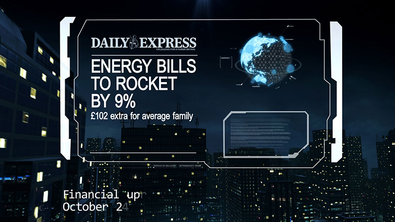 To tell the story of SSE’s financial situation we decided to create a virtual cityscape upon which we could incorporate newspaper headlines, archive footage and a digital narrator. Visual fx artist Chris Brearley at VTR North created the film in After Effects and the film was audio designed by Spencer Bain.