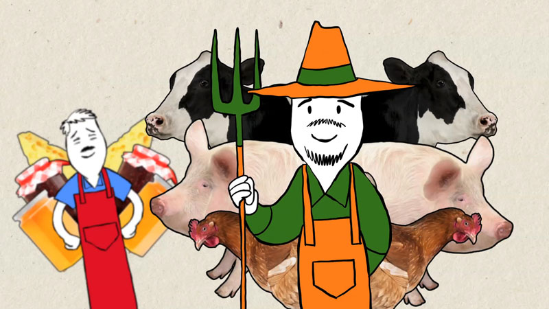 In regards to the Introduction film it was always going to be a challenge trying to jam a wealth of information and detail into a four-minute film. We needed to explain PhunkyFoods USPs in a smart, engaging way that would hook a diverse audience. We decided a narrated animation that covered all our key messages in a dizzying combination of visuals and audio would be the correct approach. The result is a fast-paced, entertaining summary of the PhunkyFoods journey that covers its history and conception; explains its products and resources; and promotes its theoretical basis and necessity in today’s modern world. It’s so crammed full of substance and style you’ll need to watch it twice. To sustain this visual approach in the training films, and meet the requirement for actuality footage and contributor interviews, we decided that we could jump between subject matters quickly, and in a more engaging style, by incorporating animated sequences style created for the Introduction film. The result is an informative visual rollercoaster of a film that combines live action actuality, stylized interviews, animated sequences and typographical graphics.