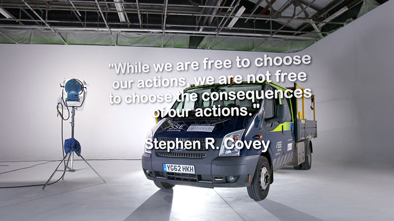 Juice filmed a fictitious story that followed the lead-up to a serious road traffic collision (RTC) involving SSE employees and members of the public. We also portrayed the aftermath – a short film which focused upon the consequences of the accident containing graphic sequences of a crash scenario. This session explored some of the attitudes and behaviours that lead to RTCs; participants were asked to consider whether they display the behaviours of a high-risk or low-risk driver and how this influences their driving behaviours.