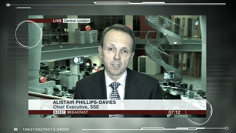 To tell the story of SSE’s financial situation we decided to create a virtual cityscape upon which we could incorporate newspaper headlines, archive footage and a digital narrator. Visual fx artist Chris Brearley at VTR North created the film in After Effects and the film was audio designed by Spencer Bain.
